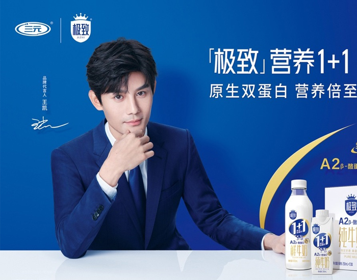 5月26日,三元极致官方宣布王凯成为其品牌代言人,提出2022年全新品牌主张“极致营养1+1为极致人生”,同时上线新一代品牌形象产品——极致1+1原生双蛋白牛奶,开启了中国高端白奶市场新的序幕。