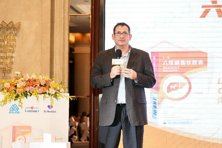 印度瑞迪博士制药有限公司新兴市场首席执行官 MV Ramana先生在致辞中首先回忆了龙灯瑞迪在中国初创时的情景,他谈到,看着当时销售团队发展到如今的规模令人感慨,每位员工的投入令他感动。慢性肝炎不只是中国面临的健康问题,更是全世界需要面对的。六维磷脂软胶囊在中国市场的成功,对全世界都有积极意义。