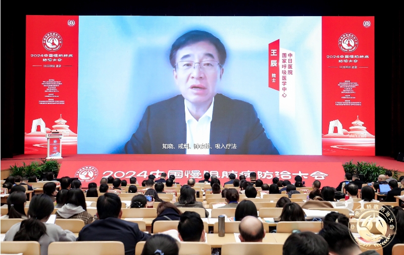 中国工程院副院长、中国医学科学院院长、北京协和医学院校长、国家呼吸医学中心主任王辰院士视频致辞。他特别强调,要在“知晓、戒烟、肺功能、吸入疗法”四个重要方面下足功夫,做好慢阻肺病的促防诊控治康工作,真正造福百姓。
