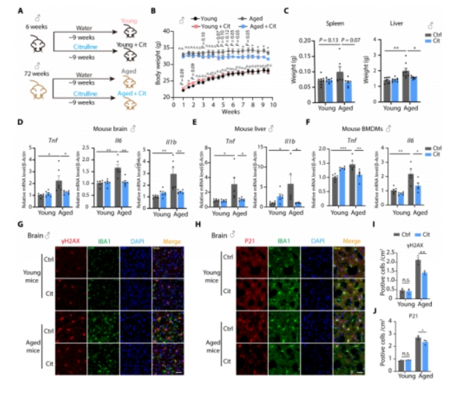 体内补充瓜氨酸实验证实,其能显著改善衰老小鼠的多个表型: