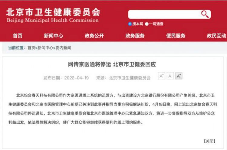网传京医通将停运,北京市卫健委最新回应
