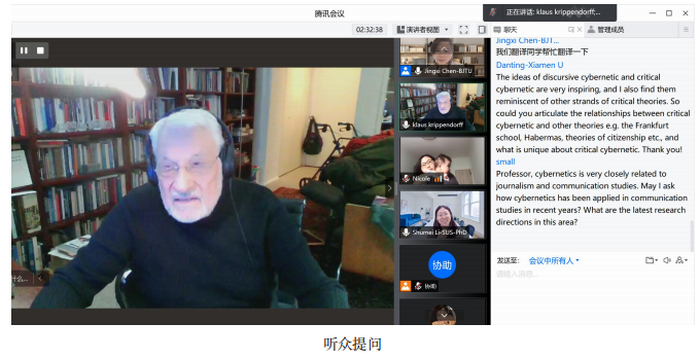 克里彭多夫教授精彩的发言结束后,讲座进入到了积极活跃地问答环节,本次线上讲座聚集了超过300名校内外听众,他们分别是来自不同高校或相关机构的老师、学生和研究者,很多听众也提出了他们精彩且评判性地提问。