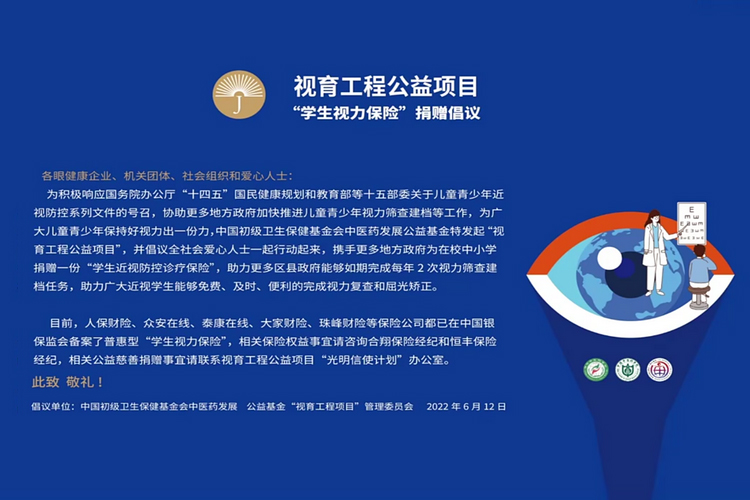2022年的全国爱眼日落下了帷幕,对于我们每一个人来说,护眼健康、预防眼疾是一个永恒的主题,明眸善睐,需要我们每时每刻小心呵护,我们的眼睛会说话,疼了、累了、困了、干涩、流泪了,都会告诉我们要休息了。无论预防还是干预,视育健康工程提出,我们,包括缺少自制能力的儿童自己,才是近视防控第一责任人,努力探索出一条政府主导、公益参与、全民行动、公益视力保险支撑的儿童青少年近视防控模式才是日常护眼爱眼之道。