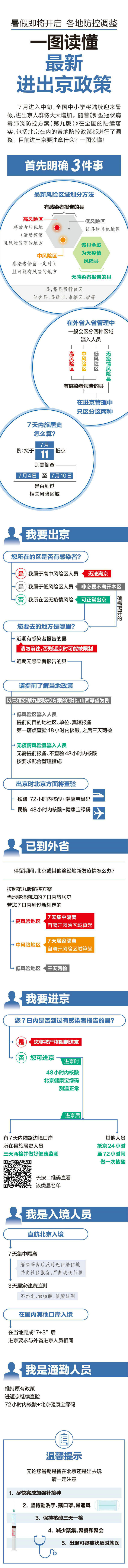 7月进入中旬,全国中小学陆续迎来暑假,进出京人群将大大增加。随着《新型冠状病毒肺炎防控方案(第九版)》在全国的陆续落实,包括北京在内的各地防控政策都进行了调整。目前进出京要注意什么?一图读懂↓