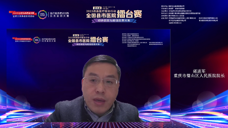 重庆市璧山区人民医院院长郭进军相信,今天的盛会必将成为交流情感的舞台、分享经验的平台、推动发展的抓手,促进医院进一步改善医疗服务,增进百姓的健康福祉,为推动健康中国建设贡献县市医院的力量!