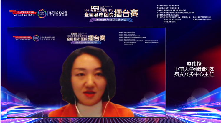 作为此次擂台赛的评委,中南大学湘雅医院病友服务中心主任廖伟锋说,从今天的案例中,看到越来越多的服务关注到医院的文化建设、人文关怀,还有院前、院中、院后的全程式管理,以及沟通技巧、医疗社工工作等,这都是作为管理者需要有的宏观性思维、创新性、协调性和改善服务必须要有的可操作性。