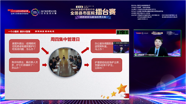 他说:“我院从150余家县级医院脱颖而出,和50余家医院云端相聚、巅峰对决,是鞭策更是机遇,每个案例都闪耀着智慧的光芒,都有值得我们去学习和借鉴的地方。”