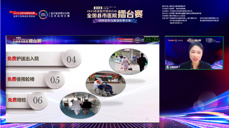 医疗服务核心体现的基本职能就是治病救人和康复,而另外一个层次的服务可以称为增值医疗服务和附加医疗服务,就是改善医疗服务中经常提到的有温度的服务,便民、惠民服务,患者的满意度,医患友好和就医幸福感的提升等,这一系列的也是今天比赛的宗旨和主题。