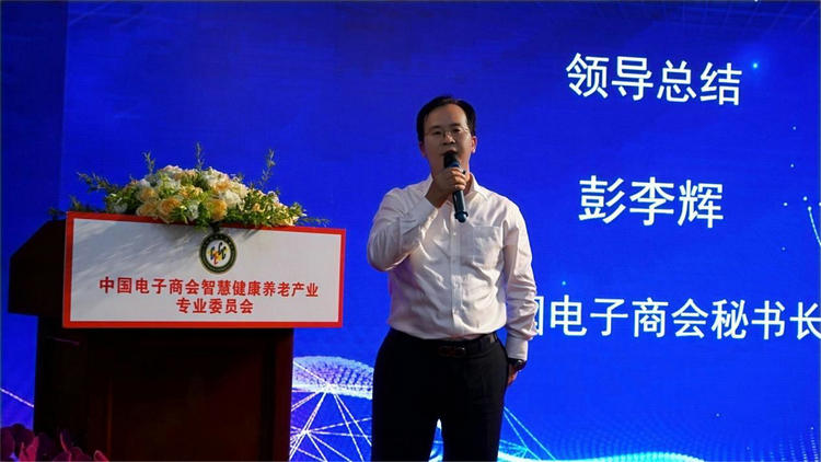 中国电子商会秘书长彭李辉(下图)讲话: