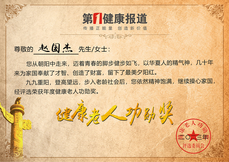 经综合评定,赵国杰喜获第二届“健康老人功勋奖”。