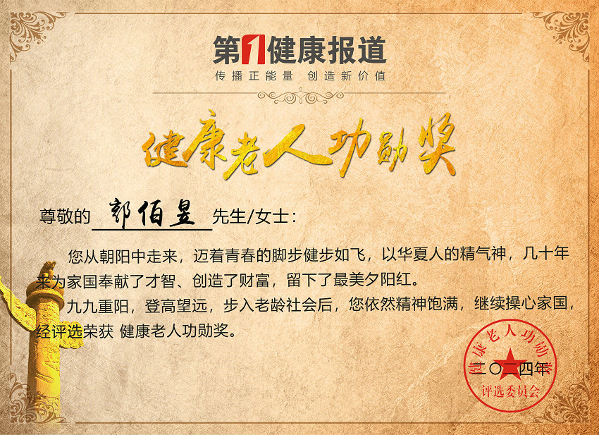 经综合评定,郭伯昱获第三届“健康老人功勋奖”。