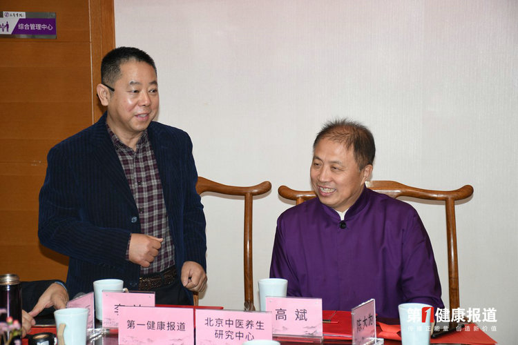 第一健康报道总编辑李达(左)与北京中医养生研究中心理事长高斌(右)