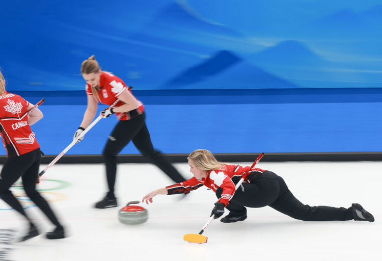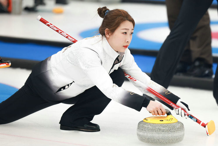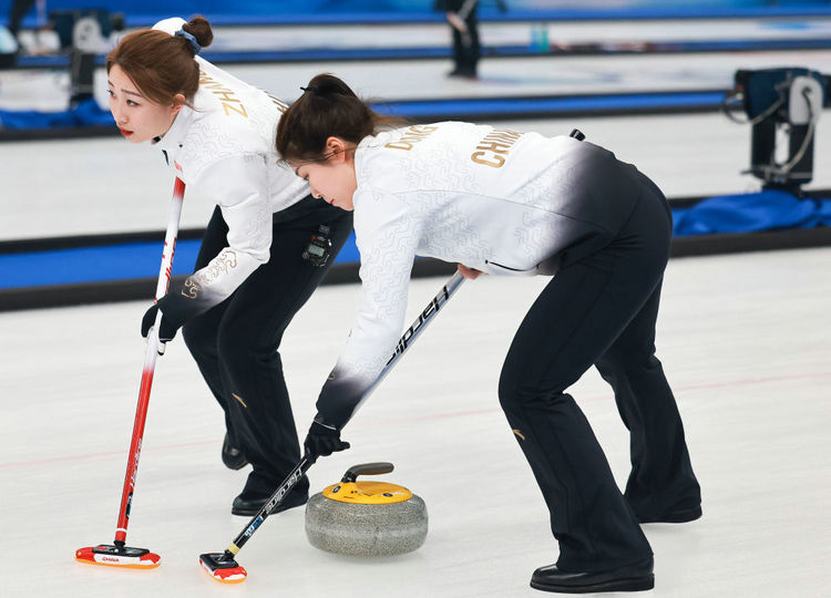 图为中国队选手姜馨迪、董子齐、张丽君(从左至右)在比赛中。(摄影:刘续)
