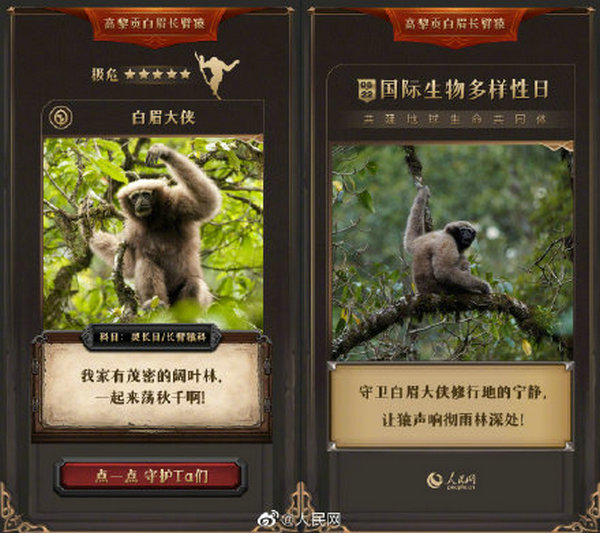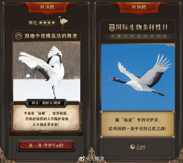 5月22日,是国际生物多样性日。远古的华夏文明图腾、湿地中优雅高洁的舞者、高黎贡山的“白眉大侠”……戳图收藏卡片,和我们一起守护Ta们,保护生物多样性,共建地球生命共同体。