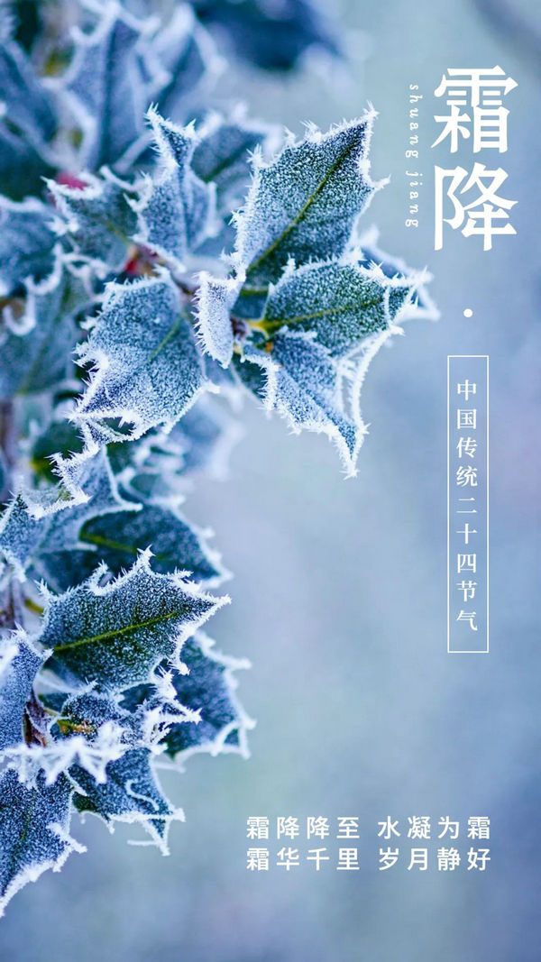 霜,露所凝也。由于“霜”是气温骤降、初霜出现、昼夜温差变化大的表现,故以“霜降”命名的节气。随着冷空气南下频繁,深秋肃杀之气愈加明显,故有「霜降杀百草」之说。