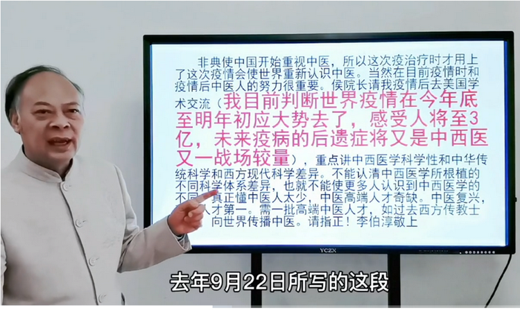 5月李伯淳总结前段时间中医预测和治疗新冠疫情的《如何更好发挥中医防治疫病》八个专题系列报告,并通过多渠道传播。