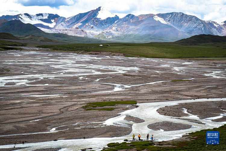 2022年7月26日,来自长江科学院的科考队员在长江源区进行科考工作(无人机照片)。新华社记者 肖艺九 摄