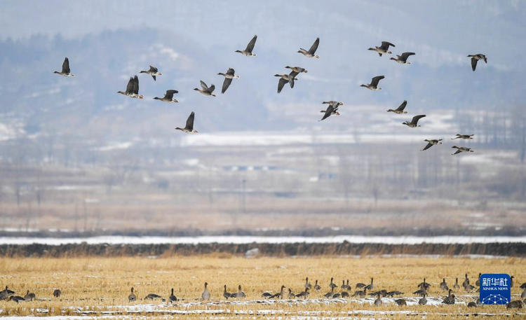 这是在吉林省珲春市敬信湿地拍摄的大雁(2020年3月3日摄)。新华社记者 许畅 摄