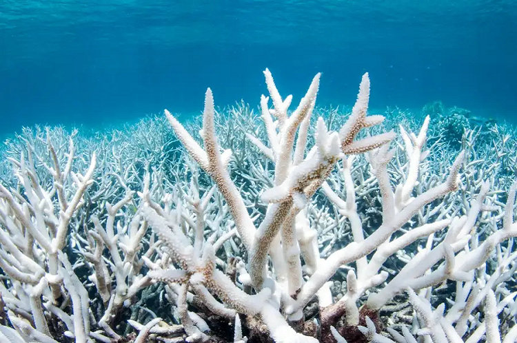 水温过高会导致珊瑚排出生活在其组织中的彩色藻类并变成白色。珊瑚是在海底“扎根”的固着动物,虽然它们可在白化事件中幸存下来,但这会阻碍它们的生长并影响繁殖。