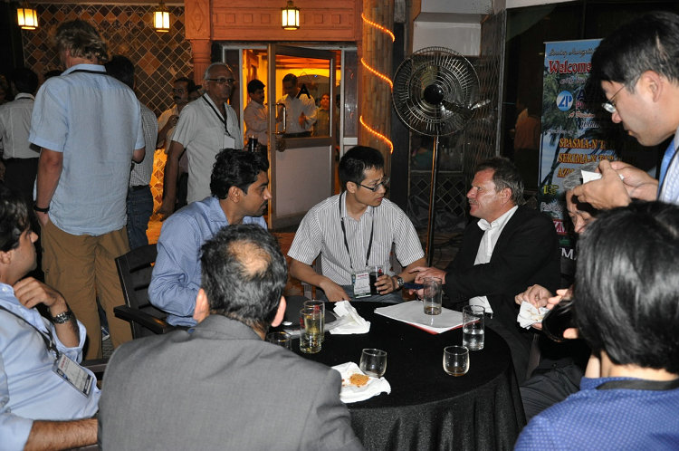 图为2012年9月1日和Hajo Themann教授(右3穿黑西装)在印度Agra足踝会议上
