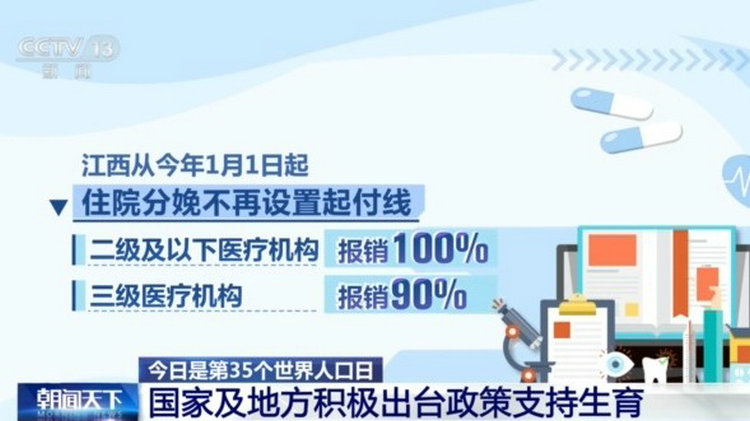 江西:从今年1月1日起,住院分娩不再设置起付线,二级及以下医疗机构报销100%、三级医疗机构报销90%。