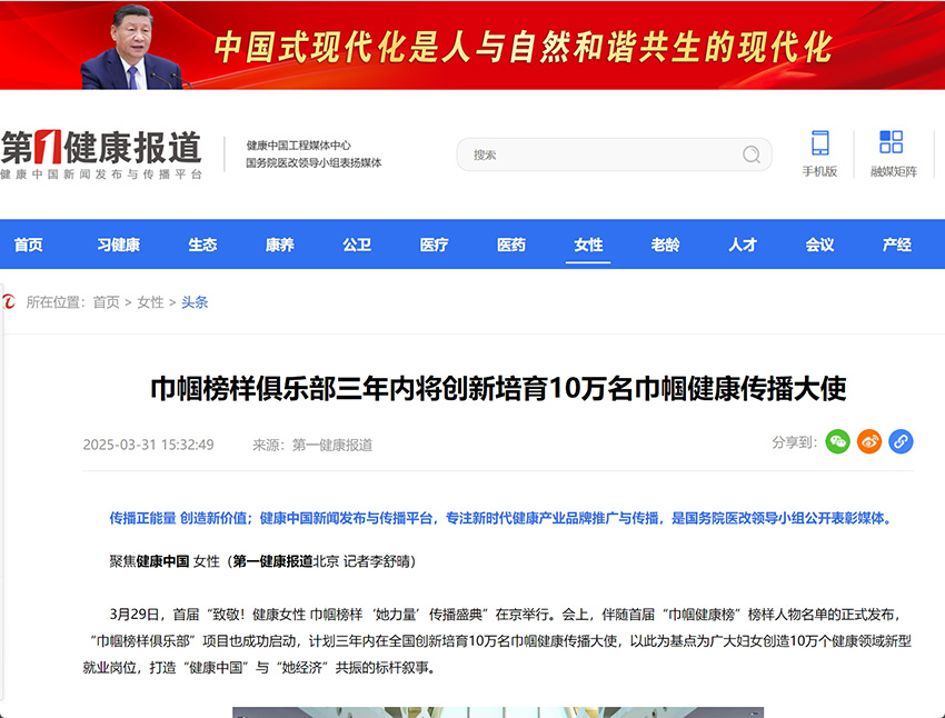 巾帼榜样俱乐部三年内将创新培育10万名巾帼健康传播大使-第一健康报道