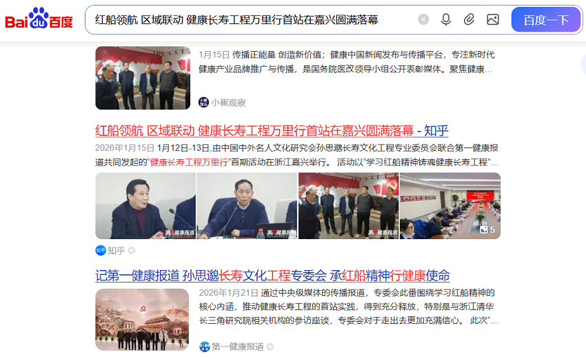 国家中央级媒体抢先宣传“健康长寿工程万里行”首站活动。1 月 14 日 中央新闻媒体人民网、中国网、中国经济时报第一时间抢先关注报道本次活动,第一健康报道官网及其网易、搜狐、腾讯、百度、知乎、快传号、360 图书馆等传媒大号迅速跟进传播,小崔自媒体转发,百度 AI 收集整理各大媒体内容,得出 AI 大数据总结,截至 1 月 16 日, 相关内容全网阅读量累计近百万次。各界代表的发言与实践案例已被多家媒体收录并全网传播,为“健康长寿工程万里行”的持续推进积累了宝贵经验,注入了新的动力。