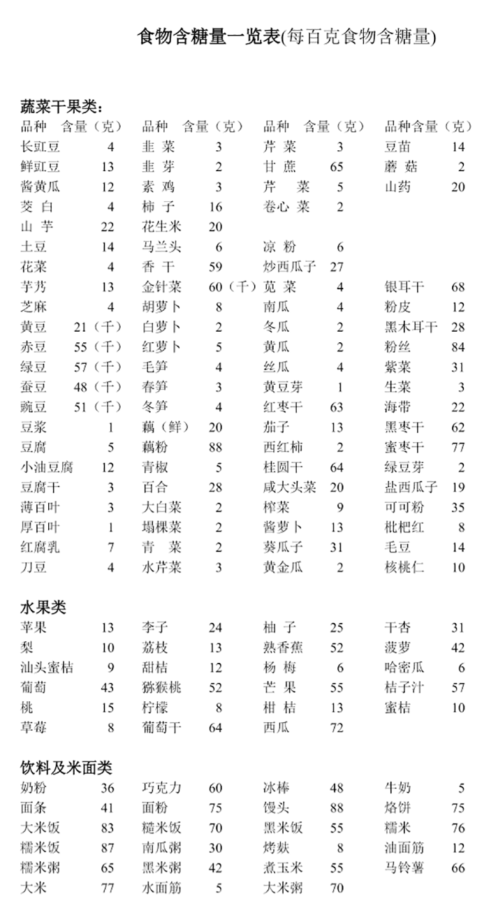 为了方便高血压患者管理糖份摄入,第一健康报道记者帮大家整理了常见食物中的含糖量表,一张图帮你分辨哪些能吃哪些要少吃 ↓(以上内容根据网络资料整理)