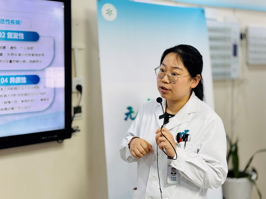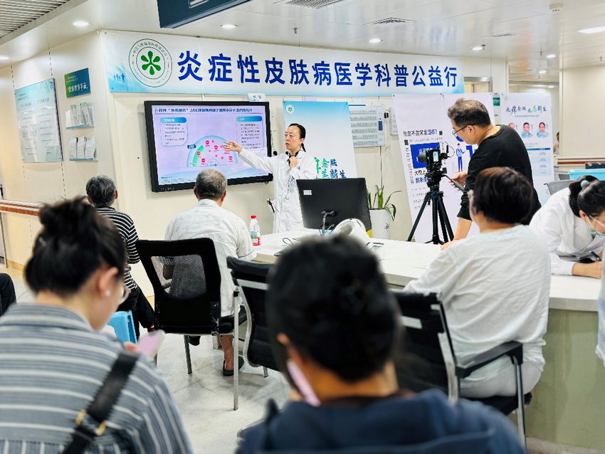活动中,董磊教授介绍了炎症性皮肤病的基础知识,张雪教授、雷晓楠教授以炎症性皮肤病的代表“特应性皮炎”为例,分别讲解了如何应对疾病的治疗和瘙痒症状内容,将艰涩难懂的学科前沿转化成通俗易懂的生活语言,为参会者科普了炎症性皮肤病的相关治疗和护理知识。
